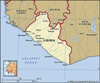 Liberiaofficially Republic of Liberiarepublic of western Africa. It has an area of about 38,250 square miles (99,067 square kilometres). Liberia is bounded by Sierra Leone to the northwest, Guinea to the north, Cote d'Ivoire to the east, and the Atlantic Ocean to the south and west. Monrovia, a port, is the capital. Liberia is the only black state in Africa never subjected to colonial rule, and it is the oldest republic on the continent. In 1973 Liberia and Sierra Leone organized the Mano River Union for economic cooperation; Guinea joined in 1980. The landReliefThe four physiographic regions of Liberia parallel the coast. The coastal plains are about 350 miles (560 kilometres) long and extend up to 25 miles inland. They are low and sandy, with miles of beaches interspersed with bar-enclosed lagoons, mangrove swamps, and a few rocky promontoriesthe highest being Cape Mount (about 1,000 feet [305 metres] in elevation) in the northwest, Cape Mesurado in Monrovia, and Cape Palmas in the southeast. Parallel to the coastal plains is a region of rolling hills some 20 miles wide with an average maximum elevation of about 300 feet; a few hills rise as high as 500 feet. It is a region suitable for agriculture and forestry. Behind the rolling hills, most of the country's interior is a dissected plateau with scattered low mountains ranging from 600 to 1,000 feet in elevation; some mountains rise to 2,000 feet. A striking feature of the mountainous northern highlands along the Guinea frontier is Mount Nimba. DrainageThe Mano and Morro rivers in the northwest and the Cavalla in the east and southeast are major rivers and form sections of Liberia's boundaries. Other major rivers are the Lofa in the north and, moving southward, the St. Paul, St. John, and Cestos, all of which parallel each other and flow perpendicular to the coast. The Farmington River is a source of hydroelectric power. Waterfalls, rapids, rocks, and sandbanks occur frequently in upstream sections of most rivers, inhibiting river traffic, and limiting navigation inland to short distances. During the rainy season there is often severe flooding in the coastal plains. Liberia forms part of the West African Shield, a rock formation 2.7 to 3.4 billion years old, composed of granite, schist, and gneiss. In Liberia the shield has been intensely folded and faulted and is interspersed with iron-bearing formations known as itabirites. Along the coast lie beds of sandstone, with occasional crystalline-rock outcrops. Monrovia stands on such an outcropping, a ridge of diabase (a dark-coloured, fine-grained rock). SoilsFour types of soil are found in Liberia. Latosols of low to medium fertility occur in rolling hill country and cover about 75 percent of the total land surface. Shallow, coarse lithosols, in the hilly and rugged terrain, cover about 16 percent of the land. Infertile regosols, or sandy soils, are found along the coastal plains. Highly fertile alluvial soils represent only about 3 percent of the land area and are utilized largely for agriculture. ClimateThe climate, especially on the coast, is warm and humid year-round, dominated by a dry season from November to April and by a rainy season from May to October. The dusty and dry harmattan (desert winds) blow from the Sahara to the coast in December, bringing relief from the high relative humidity. Deforestation and drought in the Sahel have affected the climate, lengthening the dry season by almost a month in some areas. Mean annual temperatures range between 65° F (18° C) in the northern highlands to 80° F (27° C) along the coast. Rainfall is irregular, and the rainy season varies in intensity and begins earlier at the coast than in the interior. The greatest amount of rainfall, 205 inches (5,200 millimetres), occurs at Cape Mount and diminishes inland to about 70 inches on the central plateau. The interior has hot but pleasant days and cool nights during the dry season. Plant and animal lifeLiberia has year-round evergreen vegetation. Many treessuch as red ironwood, camwood, whismore, teak, and mahoganyare valuable, but occur with other species, preventing easy harvest. Other trees of value are rubber, cocoa, coffee, and the raffia palm. Liberia's rain forest abounds with animals such as the monkey, chimpanzee, small antelope, pygmy hippopotamus, and anteater. Elephants, bush cows (short-horned buffalo), and leopards are gradually disappearing. There are many reptiles, including three types of crocodiles and at least eight poisonous snakes. There are several unique species of bats and birds, and scorpions, lizards, and fish are numerous. Settlement patternsThe present pattern of population distribution in Liberia is both a reflection of its migration history and a response to such social, economic, and cultural factors as war, employment, and superstition. Migrants from north-central Africa, who began to arrive in the 13th century, originally settled in the hinterlands but were driven by overcrowding to the coast. Immigrants from the United States and the West Indies, and from neighbouring African countries, also settled on the coast. The former migrated mostly to selected areas such as Monrovia (the oldest immigrant settlement), Buchanan, Edina, Greenville, Harper, Robertsport, and Marshall. Scattered settlements were created along newly constructed or improved roads, while plantation and mining activities encouraged larger settlements in a few interior and coastal areas. There are more than 2,000 villages, the majority of which are concentrated in central Liberia, in the northwest, and in the coastal region near Monrovia. The predominantly forested regions of south-central and northern Liberia have remained sparsely populated. The trend toward urbanization has had little impact on these villages. The result has been the segmentation of Liberian society into two coexisting subsystemstraditional-rural and modern-urban. Monrovia, founded in 1822, is the focal point of political, ec
