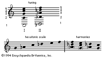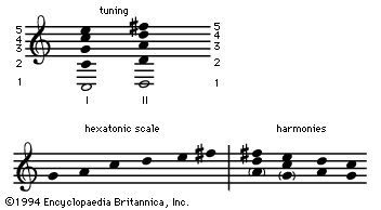 ![]() The old tone system (now obsolete) of the Kisi people of Tanzania was hexatonic. It was based on the selective exploitation of the sequence of natural harmonics from partials 6 to 11 over a single fundamental.
