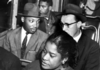Martin Luther King, Jr., and others riding an integrated bus in Montgomery, Alabama, in December